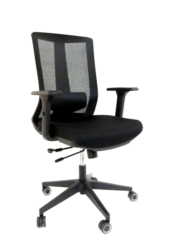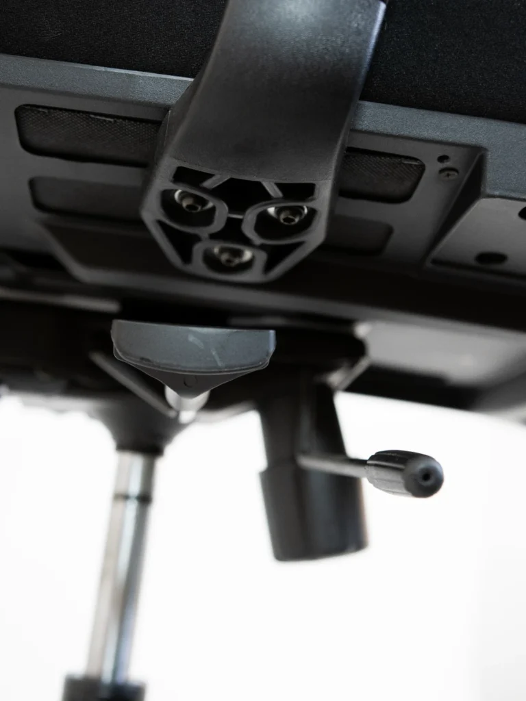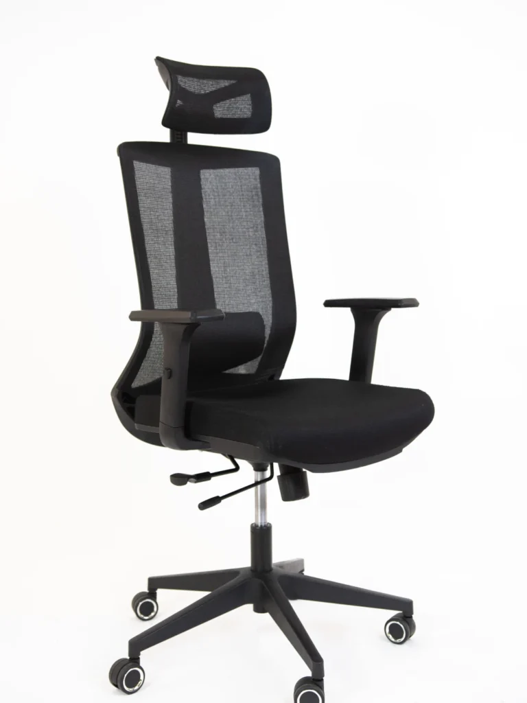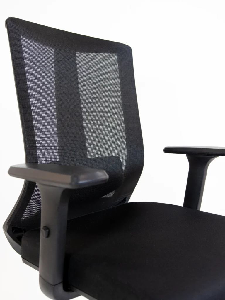Encosto anatômico com tela mesh: promove ventilação e conforto térmico durante longas jornadas.