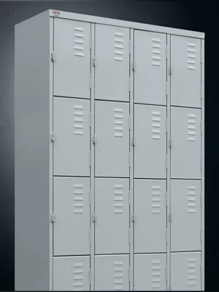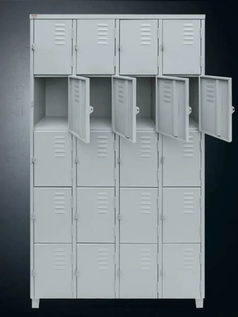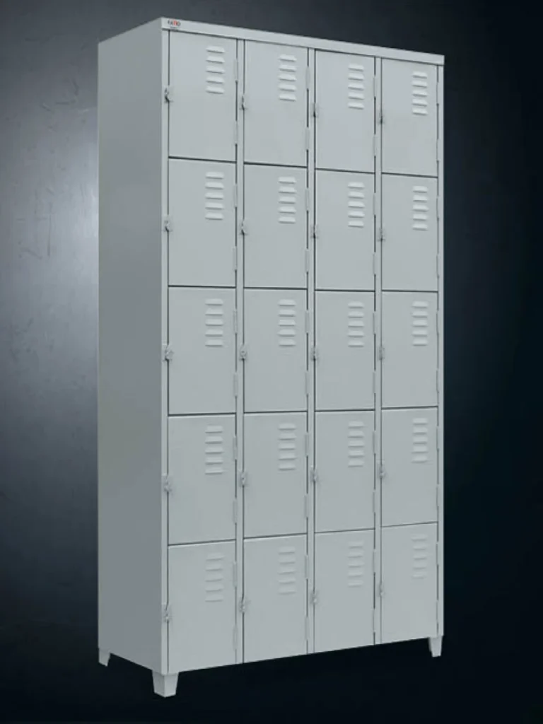 Conta com 20 portas individuais, reforço estrutural, sistema de ventilação por venezianas e fechamento por pitão para cadeado (com opção para fechadura tipo Yale). Disponível nas chapas 22, 24 e 26, com diversas cores para personalização.