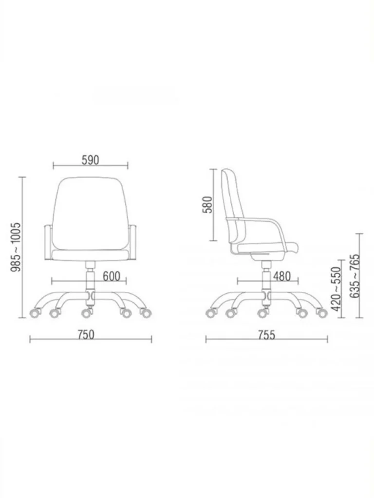 A base giratória modelo presidente, em nylon resistente, conta com pistão à gás, classe 4, que permite o ajuste preciso de altura. Os braços integrados ao conjunto completam a estrutura com firmeza e conforto.